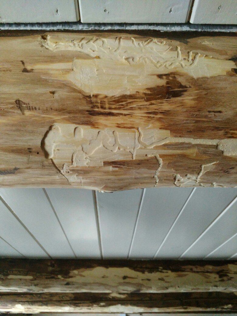Если пораженный участок большой, нужно воткнуть в поврежденное место нож или шило. Если инструмент входит легко, то повреждения значительные. В этом случае пораженный материал необходимо удалить и сжечь вместе с вредителями. Потом здоровую древесину обработать инсектицидом и антисептиком и в место выемки поместить новый брус. Если древесина достаточно крепкая, но площадь повреждения большая, обработку инсектицидами следует повторить несколько раз.